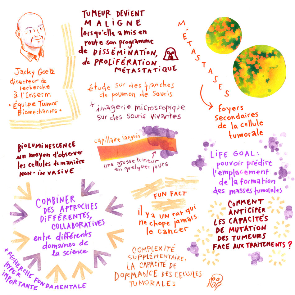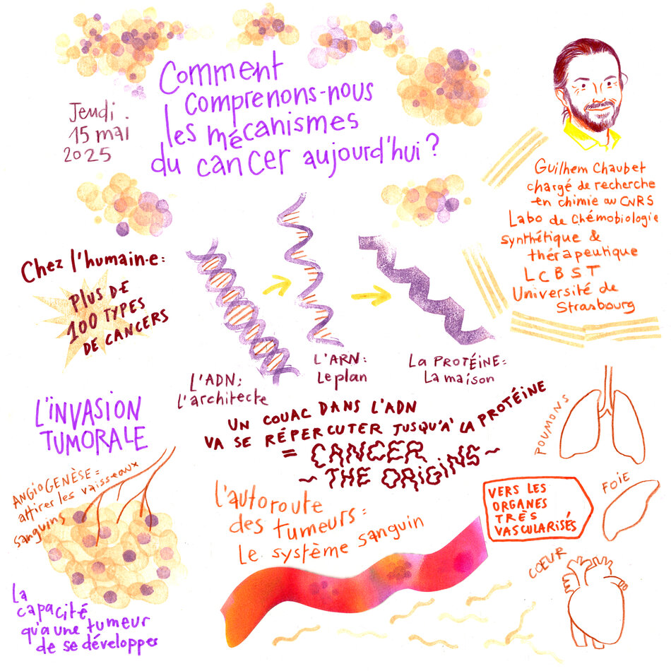 Pour cette dernière Épique Époque de l’année universitaire, nous avons discuté des avancées scientifiques sur la compréhension du cancer et de ses mécanismes. Ces échanges ont été retranscrits en direct par Hélène Bléhaut, à travers trois planches de facilitation graphique.