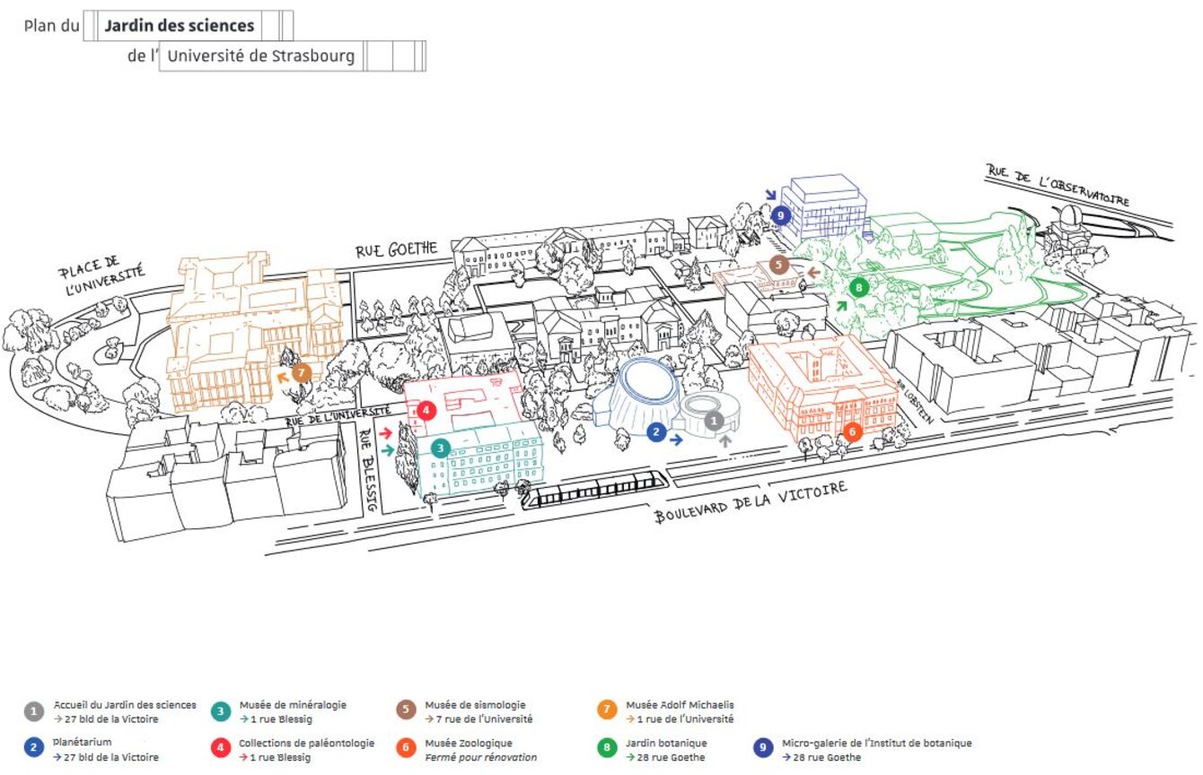 C'est un véritable quartier culturel dans la Neustadt, au coeur du campus historique, où cohabitent un Planétarium, des musées et des jardins. On y vient pour observer les étoiles, admirer les collections patrimoniales, participer à des ateliers et des parcours guidés, rencontrer les acteurs du monde scientifique ou tout simplement flâner dans les jardins. Conférences, expos, animations, festivals, etc. avec la programmation culturelle du Jardin des sciences, à Strasbourg et ailleurs en Alsace, il y en a pour tous les goûts, tous les âges…et tous les curieux !