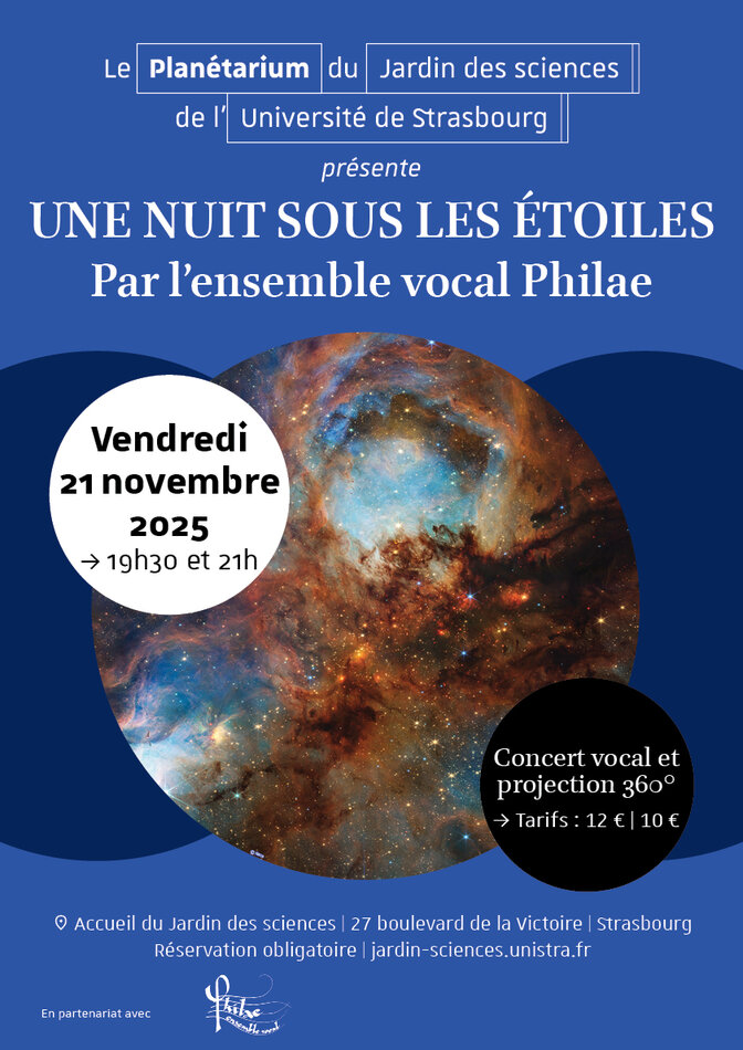 Le chef de l’ensemble Cédric Dosch et ses choristes vous invitent à passer une nuit sous les étoiles à travers un répertoire de compositeurs nordiques et américains des 20e et 21e siècles. Un concert vocal immersif et rêveur, invitant au voyage dans la variété des couleurs et scintillements de la nuit si profonde et mystérieuse.