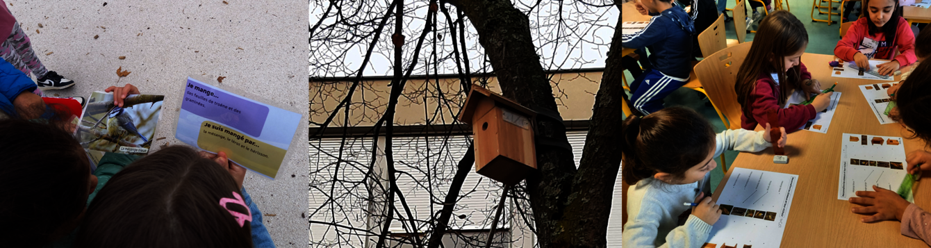 Depuis 2023, le projet « Mon école adopte un nichoir à mésanges ! » permet à des élèves de cycle 2 d'accueillir un nichoir connecté, équipé d’une caméra, dans la cour de leur école. Les élèves sont amenés à observer le cycle de reproduction des mésanges qui occuperont (dans l’idéal) le nichoir, et à recueillir des données (sur les dates de nidification, le nombre d’œufs et d’oisillons) qui seront par la suite utilisées et complétées par les chercheurs. Une chercheuse du CNRS et un médiateur scientifique du Jardin des sciences accompagnent cette démarche participative : ils proposent des séances d’ateliers permettant aux élèves et enseignants de mieux connaître la mésange charbonnière, son cycle de vie, mais aussi le monde de la recherche au contact direct d’une chercheuse.